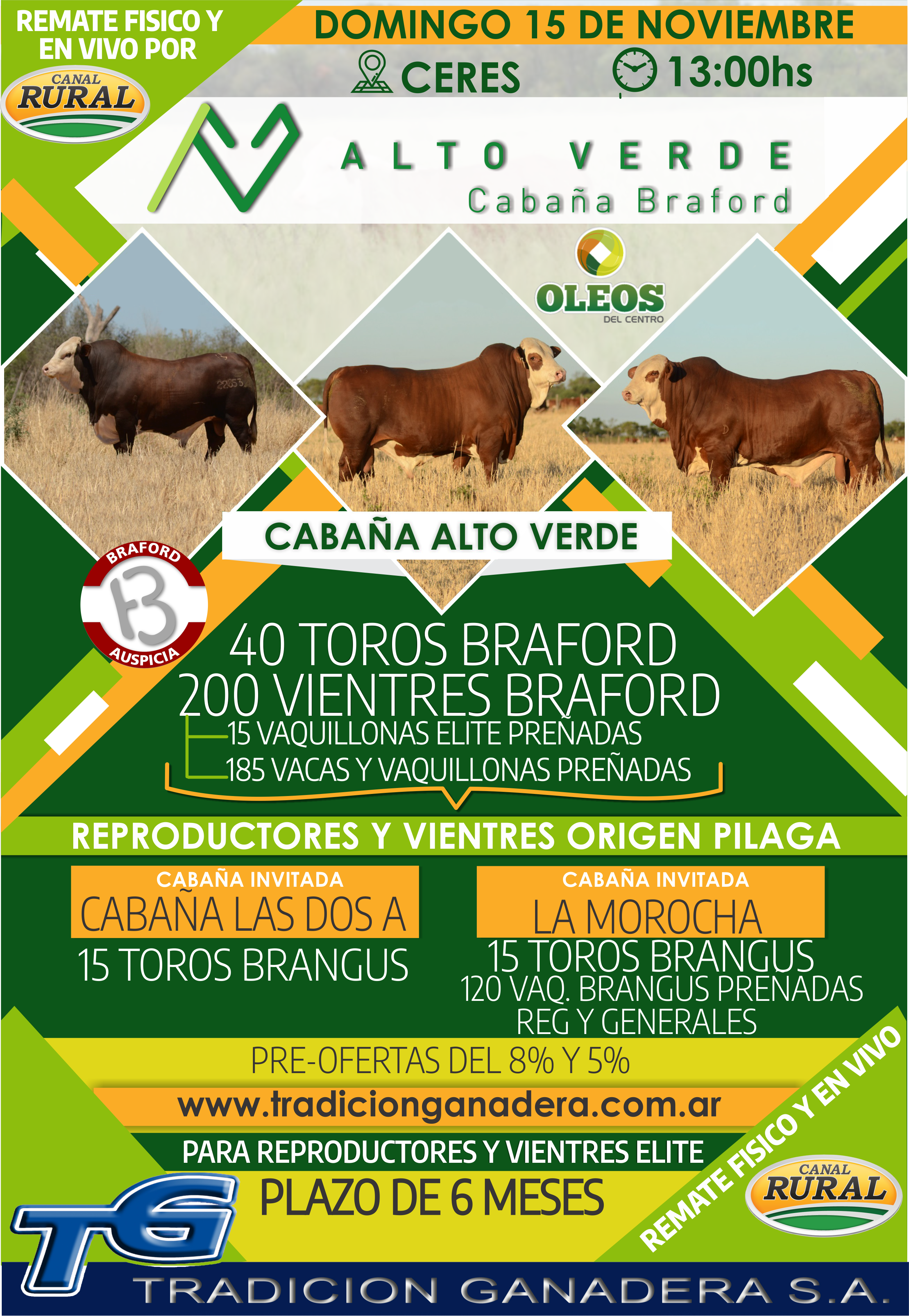 | Ver | TOROS | BRAFORD | 22991 | Alto Verde | 950 | 180 Días |